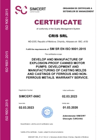 Certificate CE for CMP & CH Acc. to Directive 2014/34/EU ATEX
